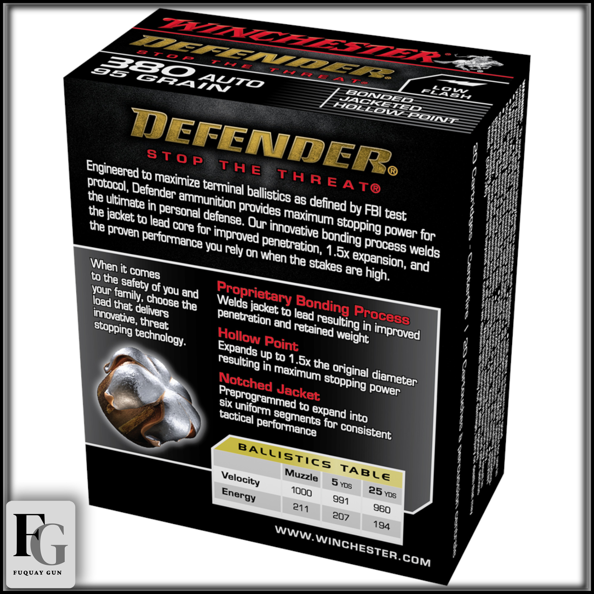 Winchester Defender 380 ACP Ammo 95gr BJHP | S380PDB